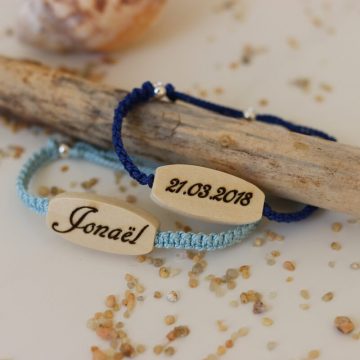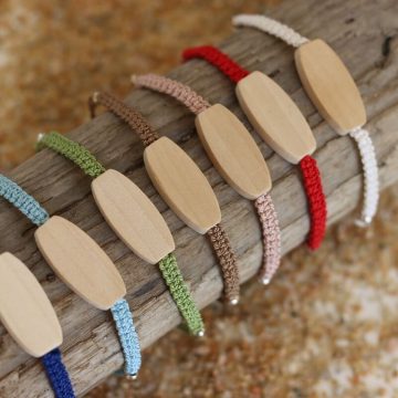 La perle gravée est en bois de hêtre brut non traité. Elle s’accorde harmonieusement au fil de soie pour un bracelet 100% naturel et recyclable !